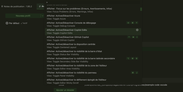 Visual Studio Code bénéficie d'une importante évolution dans la partie IA avec la version 1.95. Il est possible d'activer les fonctions IA expérimentales ou en bêta via les tags experimental et preview (@tage:nom du tag).