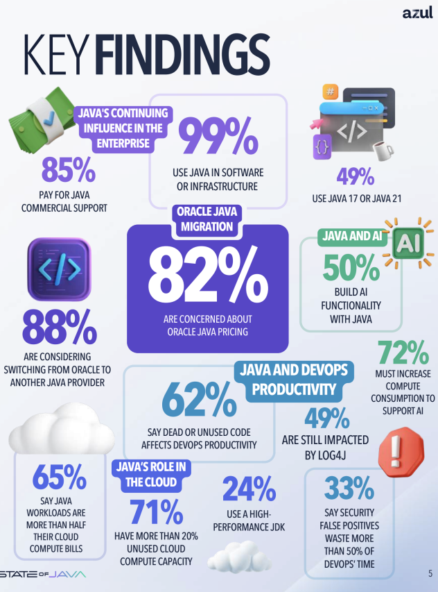 88 % des entreprises envisagent de quitter l'offre Java d'Oracle. Il y a quelques semaines, Azul avait déjà publié un post sur les risques d'un audit par Oracle des Java déployés en entreprise, suite aux changements de licences.
