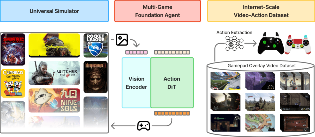 Fin décembre, NVIDIA lançait un nouveau modèle : NitroGen. L'idée derrière est très simple : jouer à votre place sur plus de 1 000 jeux. Ce LLM est une sorte de super joueur qui peut vous aider à jouer vos parties ou battre les boss de fin de niveau. Pas besoin d'accéder aux codes sources, ce LLM regarde le jeu, le comprend et joue. Ce LLM a été entraîné durant plus de 40 000 heures sur un millier de jeux. Une des sources est l'analyse des vidéos des streamers. Il peut maîtriser les environnements 3D et 2D.