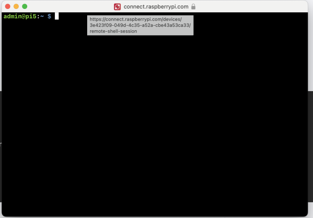 Il faut créer le lien entre Pi Connect et notre Pi 5. Pour se faire, nous ouvrons Connect sur la Pi. Il est possible de le faire avec le Terminal ou le site web.