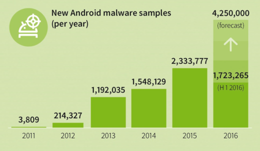 1 723 265 nouveaux codes Android malveillants au premier trimestre 2016