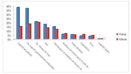 ●        d’autre part, des cybercriminels utilisant des méthodes plus classiques pour extorquer de petites sommes auprès d'un grand nombre de personnes. Les consommateurs sont ainsi victimes, parfois sans le savoir, de tactiques « parasitaires ». Ces méthodes d'attaque incluent donc l'utilisation de faux logiciels de sécurité, l'usurpation d'identité via les réseaux sociaux et les publicités malveillantes.