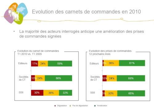 Les adhérents de Syntec Informatique déclarent des carnets de commande en hausse pour 2010. Au premier semestre, les éditeurs (59%) et les sociétés de conseil (66%) ont une croissance forte