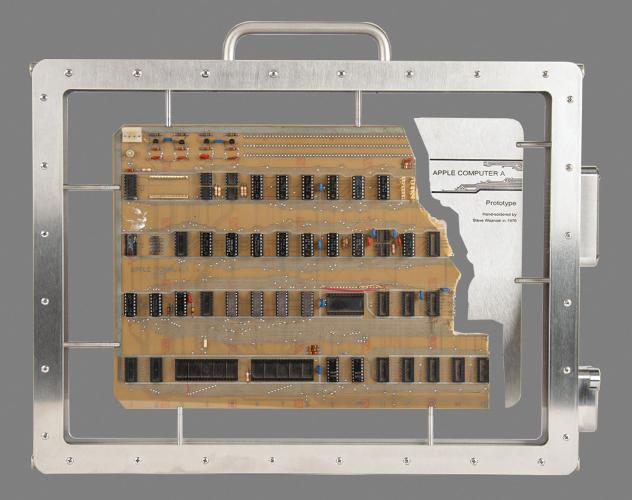 Photo : carte mère d'un des deux prototypes de l'Apple Computer A. Ce modèle fut conservé plusieurs années dans le garage de Steve Jobs.