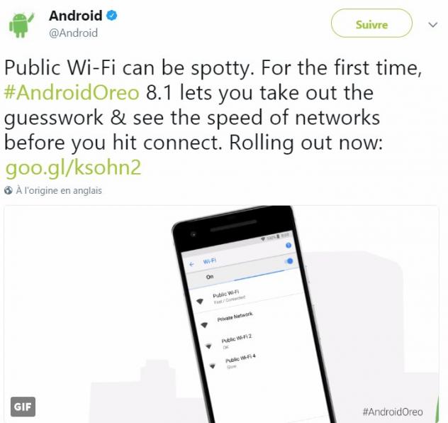Fort bien. Mais pour Android 8.1 seulement. Quand on voit à quelle vitesse les nouvelles versions d'Android sont déployées sur les smartphones... Il n'y pas que les connexions Wifi qui sont lentes...