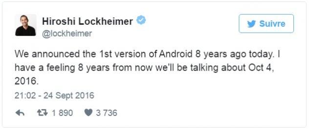 "Nous avons annoncé la première version d’Android il y a 8 ans aujourd’hui. J’ai le sentiment que dans 8 ans nous parlerons encore du 4 octobre 2016."