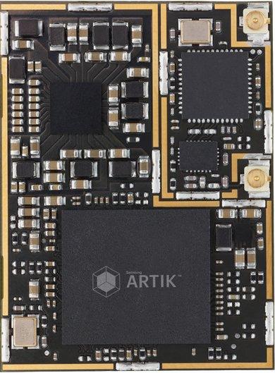 Pour une fois ce n'est pas la technologie ARM qui a été retenue, mais la technologie MIPS de microAptiv, pour le modèle de base, ARTIK 1. La puce est un SoC à deux coeurs, dont l'originalité est qu'ils sont chacun cadencés à une vitesse différente : 250 MHz et 80 MHz, ceci dans le but favoriser les économies d'énergies dans les situations qui le permettent. Le Soc, d'une taille de 12x12 millimètres intègre 1 Mo de RAM, 4 Mo de stockage flash, une unité de chiffrement et le Bluetooth Low Energy. Il est possible d'y connecter un écran WGA d'une résolution allant jusqu'à 800x480 pixels. L'air de rien, l'ARTIK 1 intègre quand même un gyroscope 9 axes, un accéléromètre et un magnétomètre.