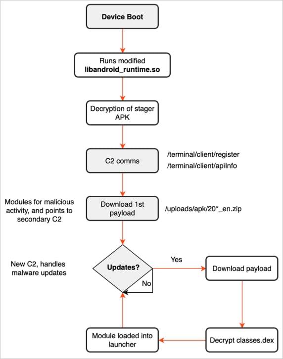 BADBOX appartient à la famille des Triada. L'infection se fait majoritairement par des terminaux provenant de constructeurs peu connus / obscurs. Les hackers piratent alors la chaine de production ou la logistique pour injecter le malware. La première trace de BADBOX remonte à 2023. Le but principal de BADBOX est financier.