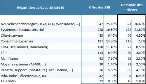 La catégorie « CRM, Décisionnel, Datamining » n’arrive toujours pas à atteindre le fameux trio avec ses 8,5 % des demandes clients en ce mois de juin
