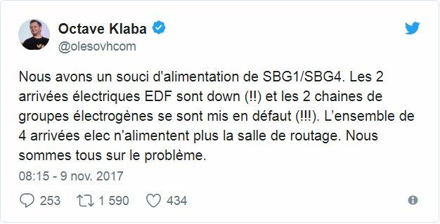 Sur son compte Twitter, Octave Klaba donne des informations sur cette panne en temps réel.