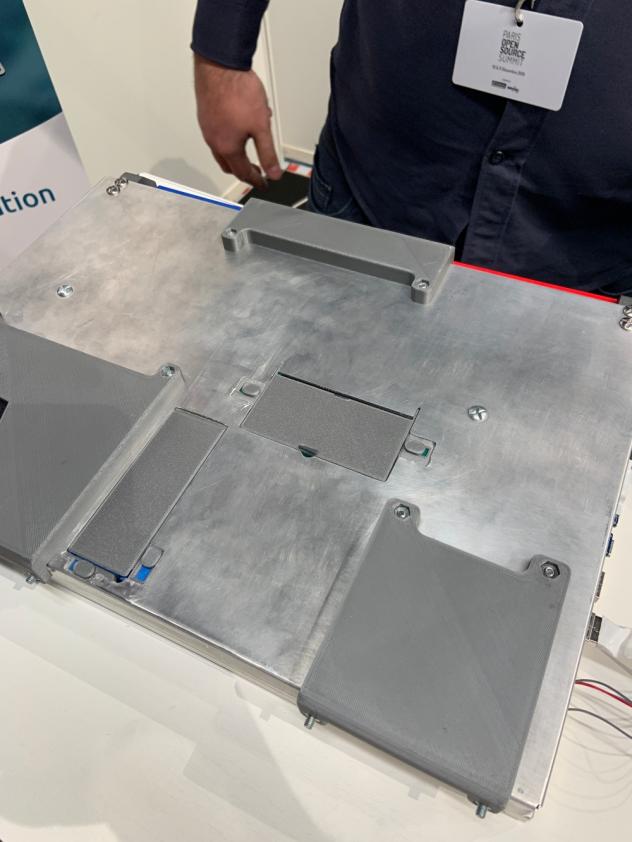 Durant le Paris Open Source Summit 2019, l’un des stands les plus intéressants était celui de Cairn Devices. L’objectif est de construire un ordinateur portable modulaire et réparation : évolutif, réparable, open hardware, sous Linux. Plusieurs composants seront facilement changeables : mémoire, stockage SSD (type M.2), GPU. De petits modules sont prévus pour rajouter des composants ou une connectique supplémentaire. Ce système n’était pas encore visible sur le prototype. On pouvait déjà voir le système d’insertion et d’éjecter des composants. Le clavier sera un classique USB personnalisé. On peut donc imaginer un changement facile de ce composant.
