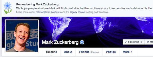 Même Mark Zuckerberg était décédé, son profil affichant le message en question :-)