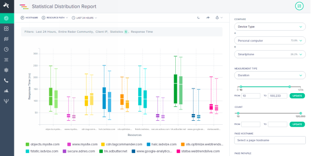 Impact va désormais être capable de bénéficier de ces avancées dans la mesure Radar pour corréler les mesures liées aux ressources à la performance des CDN, clouds et datacenters. Pour chaque objet de la page, il sera ainsi possible de voir le temps de chargement et de filtrer ces rapports par appareil, navigateur, plateforme de diffusion, etc.