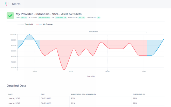 En plus du programme Beta de Cedexis Impact Resource Timing, Cedexis annonce la disponibilité immédiate de nouvelles fonctionnalités RUM de Radar. Les alertes automatisées et personnalisées permettent aux équipes DevOps de rester informer en temps réel des problèmes de performance sur internet, d'accélérer l'identification des problèmes et d'apporter des réponses plus adaptées. Pour faciliter l'analyse des problèmes, la granularité des données Radar a été significativement améliorée, permettant l'investigation sur des événements plusieurs jours après. Toutes les nouvelles fonctionnalités Radar continuent à offrir le filtrage par cloud, CDN, opérateur, datacenter, pays et type de métrique.