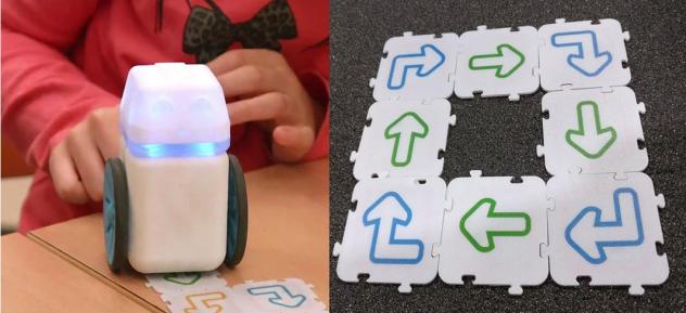 Via ces pièces de puzzle l’enfant va pouvoir “programmer” le robot en lui donnant, par exemple, une succession d’instructions directionnelles. Le robot va rouler sur les pièces de puzzle pour apprendre le déplacement demandé. Il sera ensuite capable de reproduire ce déplacement sans avoir besoin des pièces de puzzle.