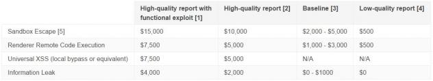 Si c'est plus difficile, il convient de récompenser davantage, ainsi que l'explique Mountain View dans un billet de blog intitulé Moins de bugs, plus d'argent. Ce billet est accompagné d'une nouvelle grille de récompenses sur la page dédiée à la chasse aux bugs dans Chrome.