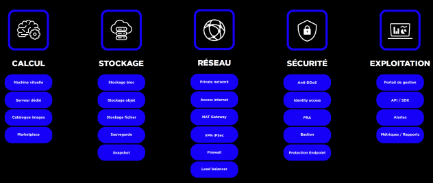 Cloud XPR doit répondre à trois types d’applications : apps métiers, apps techniques et apps transverses (ERP, CRM particulièrement). Cloud XPR est une solution hybride pour répondre à tous les usages : instances mutualités et cloud privé. L’offre s’articule autour du compute, du stockage, du réseau, de la sécurité et de la production. Bref, les briques élémentaires d’un cloud public classique.