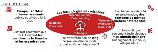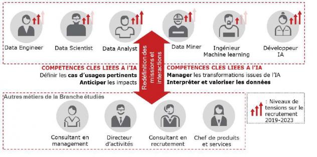 - Ces questions de besoins en RH sous-tendent par ailleurs une nécessaire réflexion sur les zones de valeurs identifiées au cours de cette étude (stratégie IA, Data Science et valorisation des données, capacité d’accompagnement des transformations technologique et organisationnelles) et sur le positionnement stratégique de tous les acteurs de la Branche.