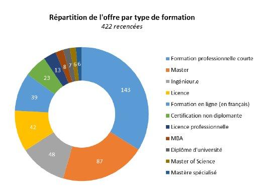 Le tissu de formation initiale, relativement bien réparti sur le territoire national, présente une capacité annuelle à diplômer 4 000 personnes au niveau « master/ingénieur », contre 2 000 personnes au niveau licence.