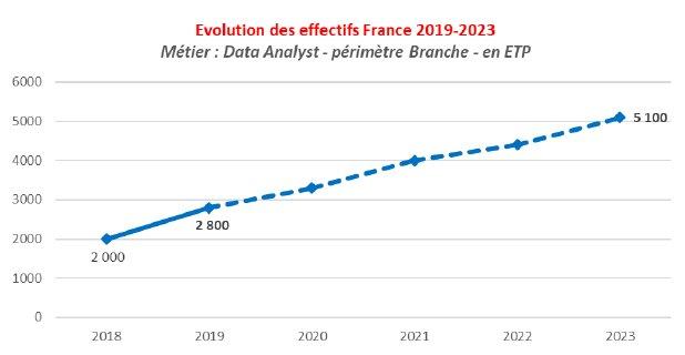 La population de Data Analysts devrait fortement s’accroître sous l’effet mécanique des besoins volumétriques d’exploitation de données, de la transformation de certains métiers (ex chargés d’études statistiques) et de l’accentuation de la dimension prédictive, voire prescriptive dans certains domaines matures (ex marketing, recommandations).