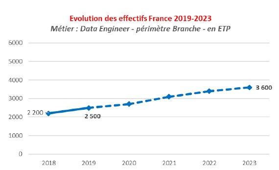 Le besoin de Data Engineers devrait s’accroître sur la période et audelà, avec un rôle de plus en plus stratégique au sein d’entreprises orientées par les Data. Il s’agit d’un profil plus accessible via des mobilités professionnelles à ce jour (ex Data Scientists). Leur recrutement externe est sous forte tension (attractivité faible du métier pour les jeunes diplômés).