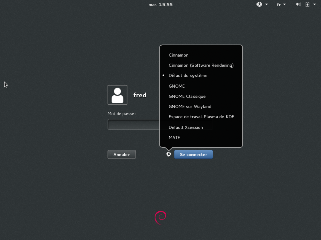 Ce serait dommage. Fidèle à son habitude, Debian livre un système stable qui est excellent. Pendant longtemps Debian a été une distribution surtout prisée pour les serveurs. Ceci en raison de sa stabilité légendaire, de son organisation saine et de son remarquable système de paquetage. Ce n'est pas sans raison que des distributions grand public comme Ubuntu sont basées sur Debian. Mais aujourd'hui, Debian fait très bonne figure sur les PC de bureau. Son installateur graphique est simple et efficace. Il vous permet d'installer de nombreux bureaux : GNOME, GNOME Classique, KDE, Cinnamon, MATE,... Au login, vous pouvez basculer sur le bureau de votre choix et décider ainsi agréablement lequel vous convient le mieux.