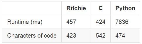 Source : developpez.com http://www.developpez.com/actu/93657/Ritchie-un-nouveau-langage-de-programmation-derive-de-C-qui-veut-combiner-la-facilite-de-Python-et-la-vitesse-de-C/