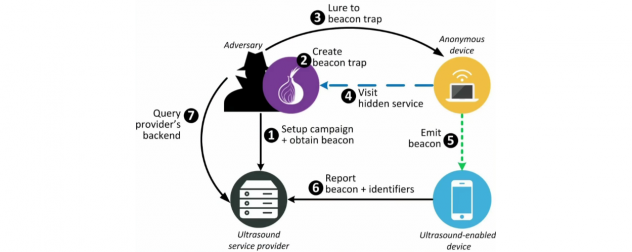 En effet, explique Vasilios Mavroudis , il suffit que des sites Web embarquent du code JavaScript - éventuellement injecté par une bonne vielle attaque XSS à la papa pour le coup - qui émettra des ultrasons au moyen de l'API HTML5. Si à ce moment un internaute surfe via Tor mais que son smartphone est allumé, celui-ci réagira aux ultrasons et enverra des informations telles que IP réelle (du smartphone) et localisation à ceux qui voudront connaître son identité. A partir de là, il suffit de soumettre l'opérateur telecom à la question pour obtenir l'identité de l'internaute. De la même façon, les autorités pourraient contraindre les annonceurs à fournir les informations qu'ils recueilleraient par ce procédé, afin d'identifier des internautes.
