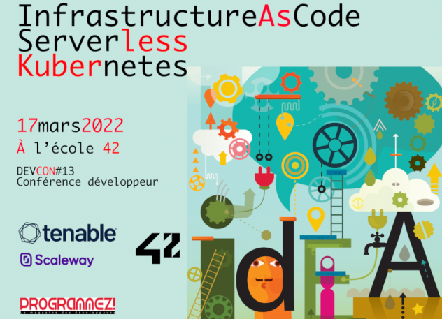 Notre conférence développeurs DevCon #13 se déroulera jeudi 17 mars 2022, à partir de 13h30 et aura pour thème : Infrastructure as Code + Kubernetes + Serverless