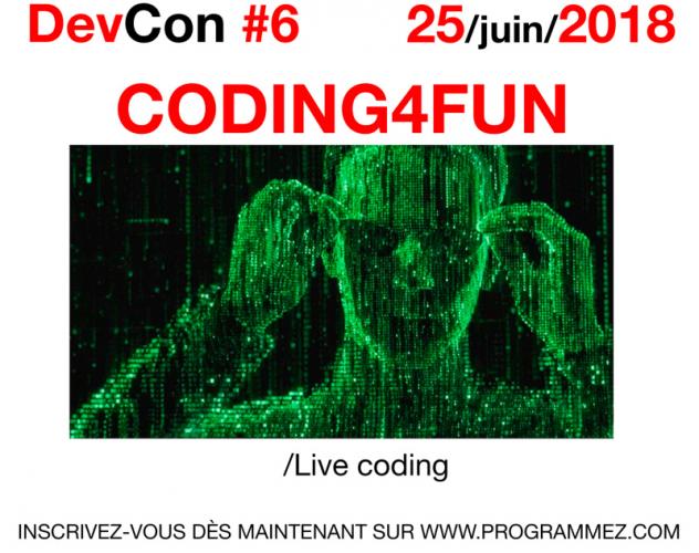 Si tu rêves de live coding sur scène ? Si tu veux voir du code, du code et encore du code en direct ? Viens découvrir les développeurs qui vont relever le défi de la DevCon #6 Programmez! : codez les projets sur scène !