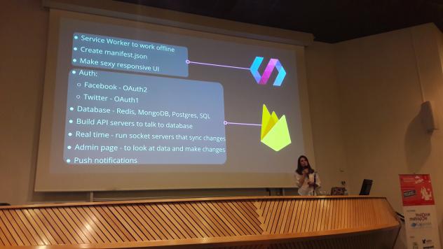 Les petits fours du midi étaient bons, très bons, trop bons sûrement. Ma capacité de concentration n’est plus celle de 9h ce matin. La présentation de Sofiya Huts semble pourtant très claire. Elle décrit, étape par étape, la méthodologie qu’elle a mis en place pour créer une progressive web app en associant Polymer (librairie de composants web open-source de Google) et Firebase (framework de Google pour stocker et manipuler les données en temps réel). La combinaison de ces deux outils permet de créer des applications rapidement, en se concentrant sur la partie front-end.