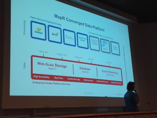 Ce talk m’aura permis de découvrir les technos : Kafka (projet opensource créé par Linkedin : techno de streaming pour déplacer de la donnée) et MapR Streams (même concept que Kafka, système de flux de données) qui permettent de faire le lien entre les producteurs de données et ceux qui les analysent, le tout en temps réel avec une échelle illimitée.