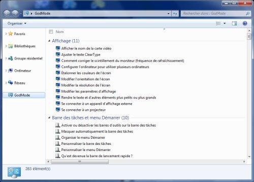 Savez vous qu'il existe un GodMode, ou mode Dieu dans Windows 7 ? Pour y accéder, il suffit de créer un dossier n'importe où, mais le bureau est évidemment un bon endroit, sous le nom