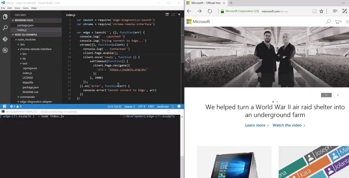 Ce nouvel outil, basé sur node.js, permet donc de faire la même chose avec Edge. Les éditeurs Visual Studio Code et Sublime Text sont supportés
