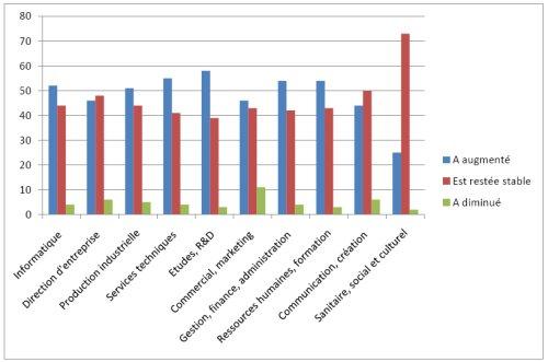 Cependant, les situations sont également contrastées selon les fonctions. L’Informatique, la Recherche Développement et le Marketing-commercial, trois fonctions qui recrutent traditionnellement bon nombre de jeunes diplômés, voient le salaire dans les offres légèrement augmenter.
