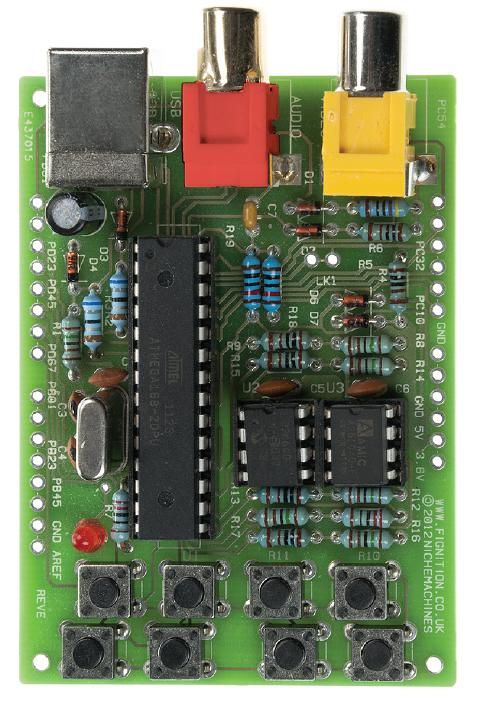 Conçu pour être construit par des débutants, FIGnition arrive préchargé avec le langage de programmation Forth, proposant un environnement dans lequel apprendre et exécuter du code informatique de façon interactive. L’alimentation est fournie via un port USB, et la carte se connecte à une TV au format PAL ou NTSC, affichant un texte en 25 x 24 ou une image graphique de 160x160 au format bitmap. Ni clavier externe ni souris ne sont requis pour commencer : les commandes et la programmation peuvent être exécutées facilement en utilisant le clavier huit touches embarqué.