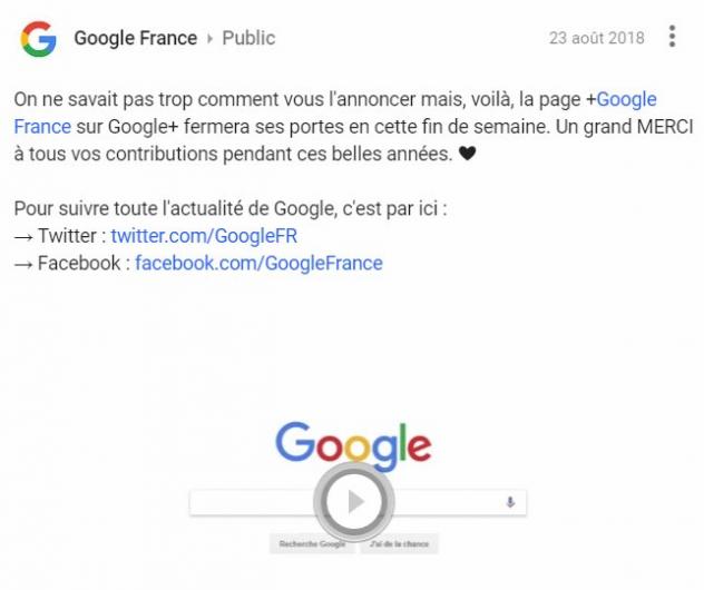 A tel point, semble-t-il, que Google vient d'annoncer la fermeture de sa page sur Google+ à la fin de cette semaine. 'On ne savait pas trop comment vous l'annoncer' écrit Google France :-)
