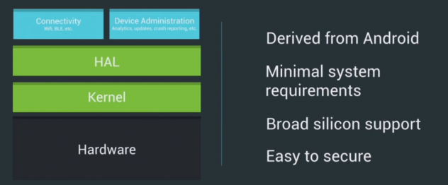 Les objets connectés, la domotique sont des domaines en pleine explosion. Google se devait d’y aller avec de fortes annonces. Google annonce une plate-forme complète : Brillo, un système complet très léger pour les IoT. Il s’agit d’un dérivé d’Android léger, les couches de sécurité, réseaux. Les IoT ont besoin d’une communication unifiée, avec un langage commun et simple. Google utilisera Weave qui de connecter le cloud, les objets et le téléphone. Weave sera multiplateforme et aura ses propres API. On pourra gérer et se connecter aux objets Brillo sur son Android.