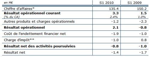Conformément aux annonces, le résultat opérationnel courant (ROC) s’est amélioré au 1er semestre, où il a atteint 3.3 M€ contre 1.5 M€ lors du 1er semestre 2009.