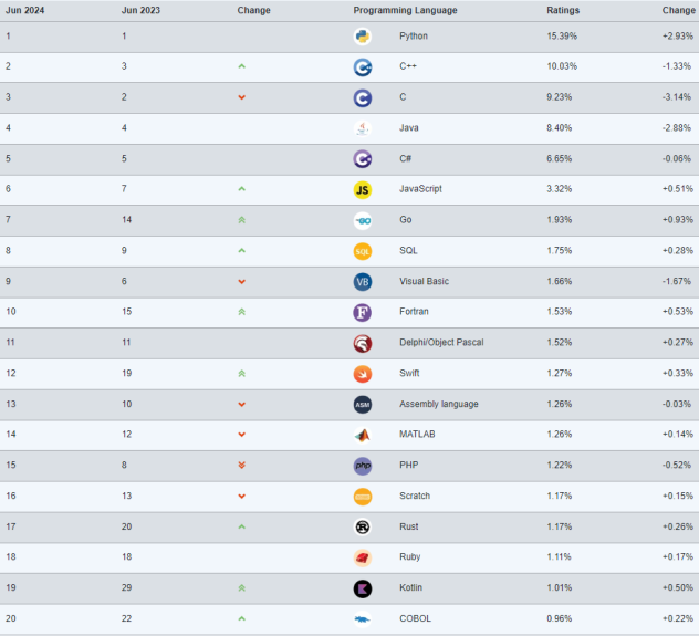 Index TIOBE juin 2024 : C++ dépasse C et atteint la deuxième place