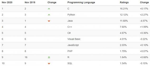 C'est la première fois depuis environ 20 ans que l'index TIOBE existe, que C et Java n'occupent plus les deux premières places du classement. En effet, dans l'index TIOBE du mois d'octobre, si l'indéboulonnable C reste à la première place, c'est désormais Python qui est classé deuxième.