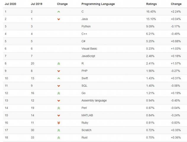 Index TIOBE : R ne manque pas d’R en juillet !