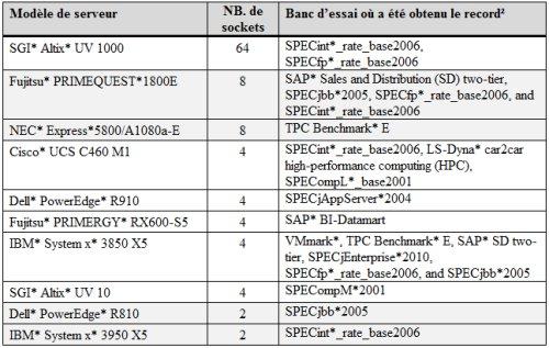 Le tarif des nouveaux processeurs Intel Xeon séries 7500 et 6500 va de 744 à 3 692 USD l’unité par mille. Renseignements complémentaires : www.intel.com/server .