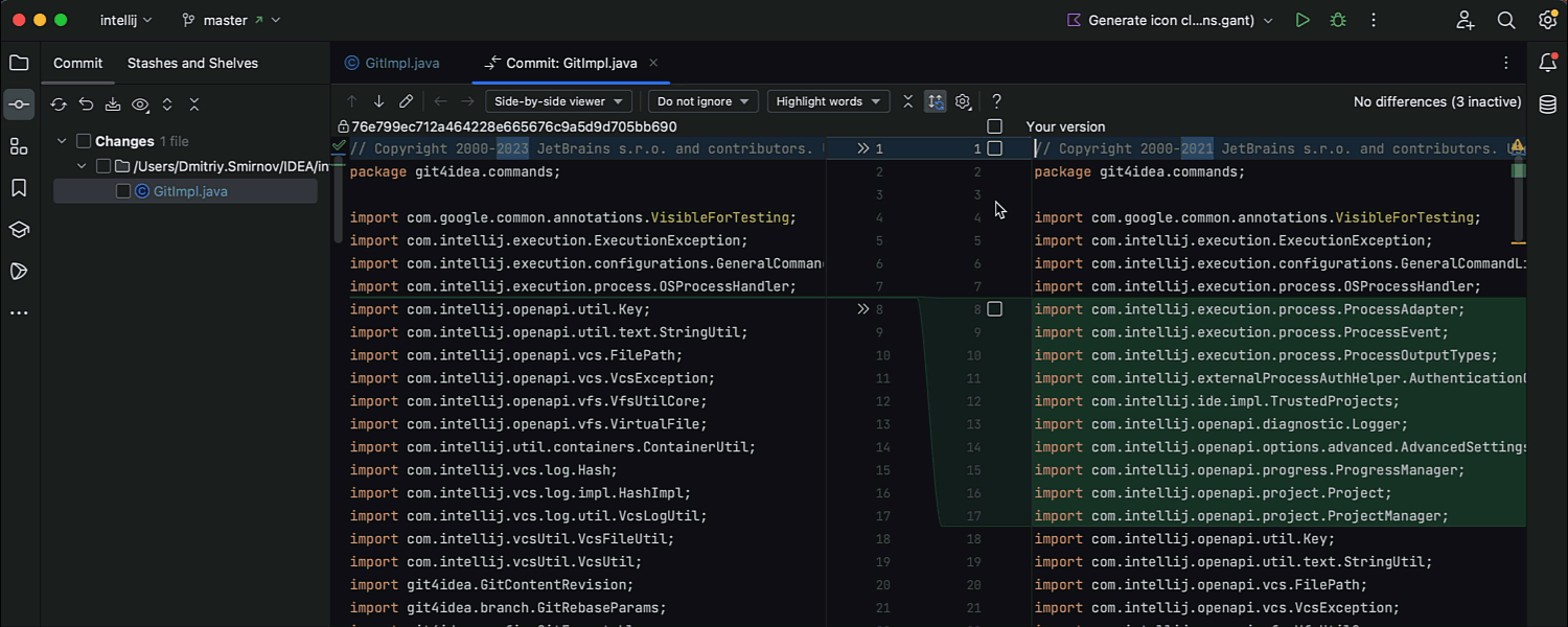 IntelliJ IDEA 2023.2 EAP 5 introduit une fonctionnalité pour valider de manière sélective des parties spécifiques de morceaux de code. Pour effectuer une validation partielle, sélectionnez les lignes dans un morceau et appelez Inclure ces lignes dans la validation à partir du menu contextuel. Le morceau sera divisé en lignes individuelles avec celles sélectionnées en surbrillance. Vous pouvez ajouter ou exclure des lignes de la sélection à l'aide des cases à cocher ou du menu contextuel.