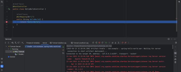 Depuis IntelliJ IDEA 2023.2 EAP 5, il est possible d'exécuter et de déboguer des applications déployées sur Tomcat sur le sous-système Windows pour Linux (WSL). Pour travailler avec des applications basées sur Tomcat sur WSL, vous devez déclarer la variable d'environnement JAVA_HOME dans le fichier /etc/environment ou dans le fichier ~/.bashrc.