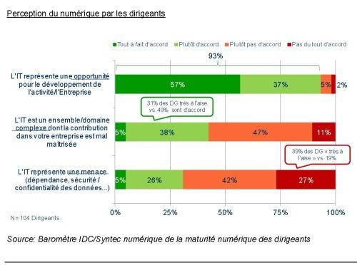 IDC note cependant que « Si les dirigeants ont pris conscience du levier que peut représenter le numérique dans leur activité, ils voient encore mal comment ils peuvent concrètement mettre en oeuvre ce levier dans leur entreprise. »