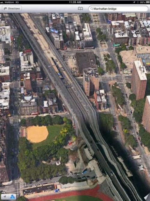 Avec son nouvel iPhone 5, Apple a laissé l'application Google Maps au profit de la sienne propre : Plans.  Mais il se trouve que le départ de cette application présente quelques ratés, qui font rire sur le Web, et dont, bien entendu, la concurrence d'Apple se gausse très volontiers. Monuments et construction écrasés, localisation fantaisistes pour ne par dire plus...