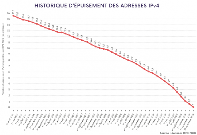 Le rapport rappelle que l’IPv4, pour Internet Protocol version 4, est utilisé depuis 1983 pour permettre à internet de fonctionner : chaque terminal sur le réseau internet (ordinateur, téléphone, serveur etc.) possède une adresse IPv4. Le protocole IPv4, utilisé sur internet dès ses débuts, offre un espace d'adressage de près de 4,3 milliards d'adresses IP. Or, le succès d'internet, la diversité des usages et la multiplication des objets connectés ont eu comme conséquence directe l'épuisement progressif des adresses IPv4, certaines régions du monde étant touchées plus que d'autres. Les principaux opérateurs français (Bouygues Telecom, Orange, SFR) ont déjà affecté entre environ 93% et 98% des adresses IPv4 qu’ils possèdent, à fin juin 2021.