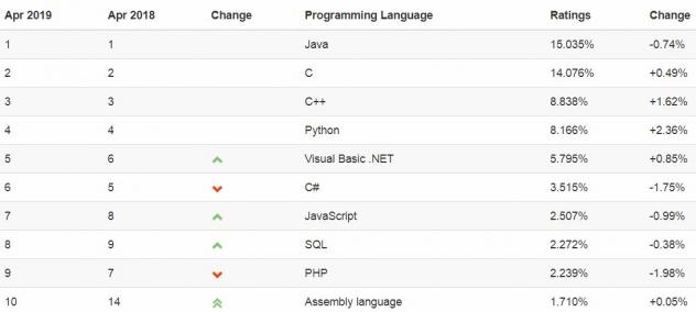 L'assembleur revient dans le Top 10 de l'index TIOBE !