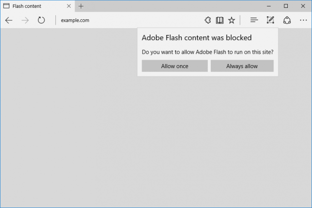 Dans la prochaine mise à jour majeure de Windows 10, le navigateur Edge bloquera les contenu Flash, y compris dans la zone centrale des pages Web, et le player ne sera même pas chargé. Ceci pour améliorer les performances, l'autonomie de la batterie et la sécurité souligne Microsoft.